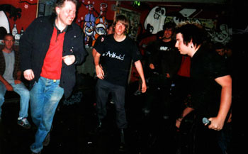 Der furiose Konzertabend beginnt mit einer Premiere, und die stellt auch eine Premiere in der Soylent Gelb-Geschichte dar: V.U.N. (VÖLLIG UNTALENTIERTE NIETEN), brandneuer Stern am Münchner Punkhimmel, kommen frisch aus dem Proberaum und stellen sich bei Soylent Gelb ihrem ersten Livepublikum. Und das äußerst erfolgreich, sie machen ihrem Namen ("Vögeln und Nichtstun", eine ursprünglich angedachte Zusatz-/Alternativbedeutung von "V.U.N.", wurde bald wieder verworfen, warum auch immer...) selbstverständlich überhaupt keine Ehre, sondern punkrocken uns ganz anständig. Heute bekanntlich nicht zum letzten Mal - wenn auch zum letzten Mal in dieser Besetzung. Manu wird später durch Säm ersetzt, weitere Bandmusiker stoßen zu der Truppe - und knapp 7 Monate später (Yelloween 2009) wird auch die neue Besetzung dem werten Soylent Gelb-Publikum präsentiert. Doch zunächst erstmal zurück zur Osterpunknacht: V.U.N. (VÖLLIG UNTALENTIERTE NIETEN) bringen das gut gelaunte Volk sogar zum Polonaisetanzen und heizen bestens für RECENT LIES, KOLLATERALSCHADEN und die SUBNOTES ein, die das pogofreudige Volk im mit über 100 Gästen gut gefülltem Sunny Red genau bis Punkt Mitternacht bestens unterhalten - dann muss nämlich Schluss sein wegen dem (schon letztes Jahr erkannten...) stillen Feiertag namens Karfreitag - und das wird auch pünktlichst eingehalten - Krach aus, Licht an, gemütlich ans Austrinken denken - und dann zufrieden nach Hause, oder wohin auch immer - schön war´s!